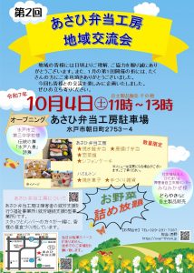 あさひ弁当工房にて第2回目となる地域交流会を開催します。ぜひお立ち寄りください。
